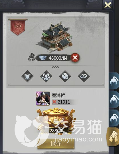 我们想要拿下一个城市自然要仔细看一下的,点击城市能够看到城市当前的情况接着玩家可以点击抢夺进行挑战。战斗获胜这个城市就是我们的了,并且在一个时辰之内这块刚被拿下的城池是不会被其他主公占领的,所以大家可以放心!每天可以占领三次,但是不成功也是算次数的所以玩家们尽量都成功好吧。