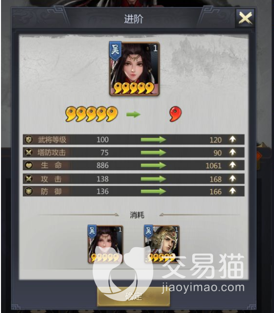 升阶就是武将升级到达上限就需要进行升阶,进阶之后武将升级的上限也得到了提升,同时还有武将的属性等也会得到提升。武将升阶也是同样的道理玩家点击升阶按钮进行突破。突破成功则代表进阶成功。