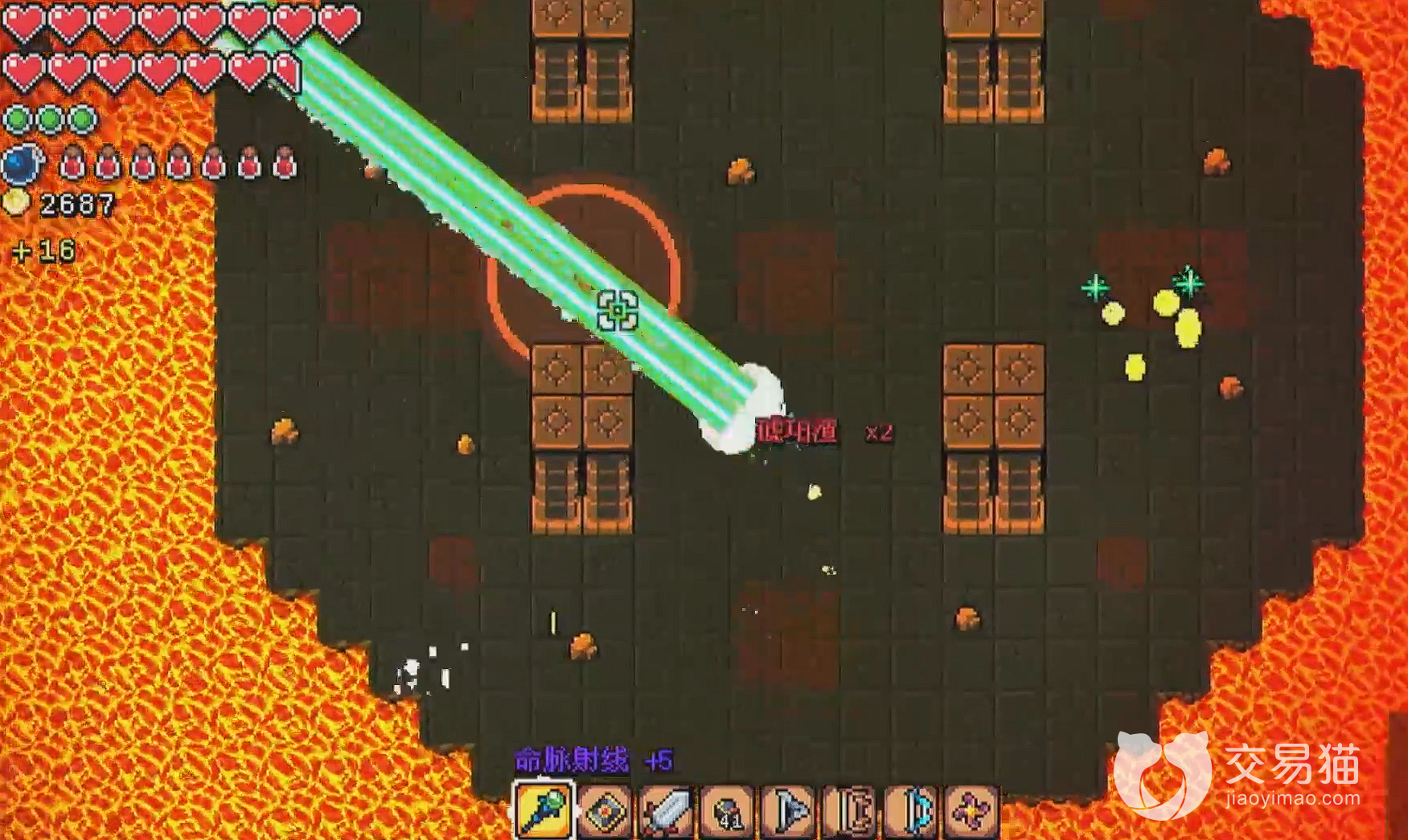 我们进去后会来到一个正在岩浆上的一个圆形平台,这个地方就是恶魔竞技场了。整个恶魔竞技场的游戏难度是依次递增的,我们每打通关一次就可以点燃上面一盏灯,待所有灯火全部点亮后,就可以通关。