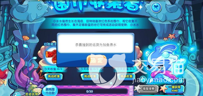 在这个活动期间,玩家至少可以三四天之内获得小水水宠物,活动收集是30条围巾就能领取,但每天只能收集到10条以内,每天最多只能收集十条。