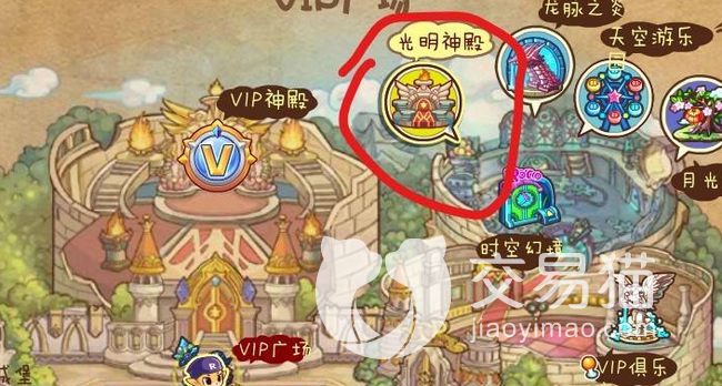 玩家手首要做的就是要先看看自己是不是VIP,如果您是回归的老玩家,系统就会送你7天的VIP。如果确认自己是VIP的话,就先进入地图界面,再然后前往活动地点,地点名就叫作“光明神殿”,然后找到VIP广场,场景里当中就能找到有一个就叫作“VIP神殿”的名称。