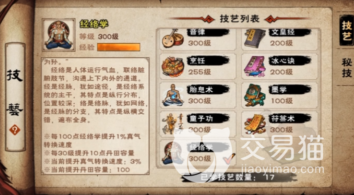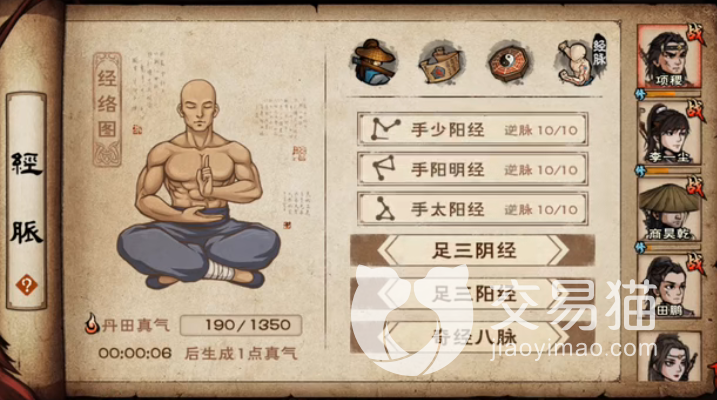 3、修寒冰或者是狂蟒和五气功法的玩家可以选择一样的经脉修习,建议选择呢手三阳经中的手阳明,可以增加阅历点,这是阅历是推荐大家先点满,可以每次任务增加百分之十的阅历值,足三阴经中就选择足太阴点太乙剑增加十五点内元。