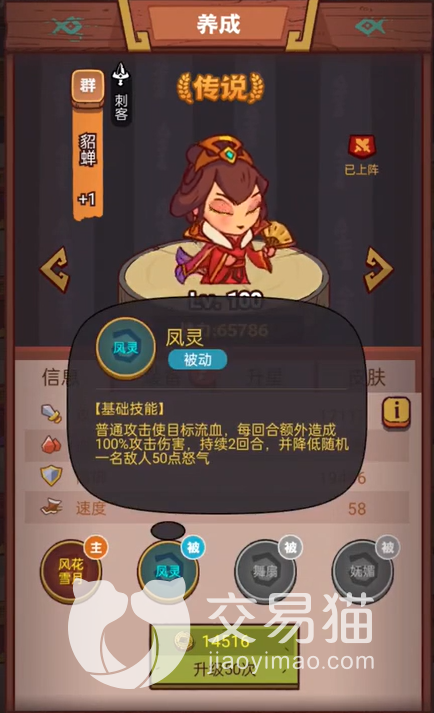 貂蝉可以使被攻击的目标流血且对其造成2回合的攻击伤害,并随机降低一人的怒气,别的不提,可以降低怒气这一点简直是太好用了,打个比方,如果敌人快被打死了,但是也快攒够了怒气值来给己方致命一击,这时候貂蝉降低了其怒气值,就是救了队友一命,给了己方多一次的存活机会,可以说在队友防御不高的情况下,这个技能太好用了。