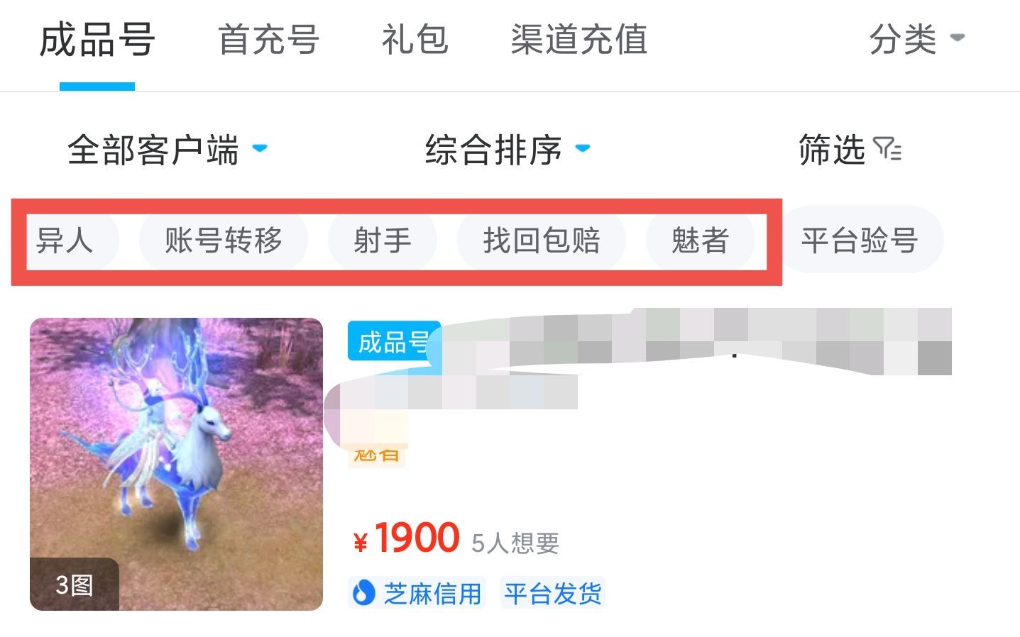挑选商品当然是买家进行的第一步,由于这款游戏的账号类型本身可选性比较多,平台内更是有成品号,首充号和折扣号让大家挑选,这里建议大家可以根据热门的关键词:出水芙蓉、烛影摇红、花前月下这些热门的服务器进行挑选,这样游戏内的活跃玩家比较多,更容易找到一起玩的人。