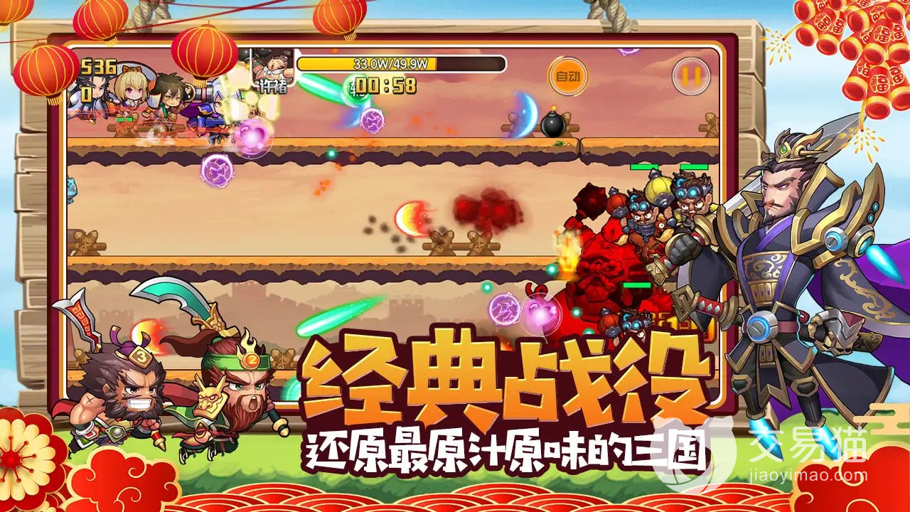 只要玩家在阵容搭配中能够很好的配合好输出英雄,保证输出英雄在战斗中可以充分的发挥自己的优势,对于其他的角色选择来说主要以保护为主,可以选择比较抗伤害的英雄,因以防御性或者辅助性的英雄,在很大程度上保护这两位核心输出英雄,游戏中有很多英雄都是具备防御能力的,防御性的肉英雄可以选择的有很多,比如说刘备,关羽等。
