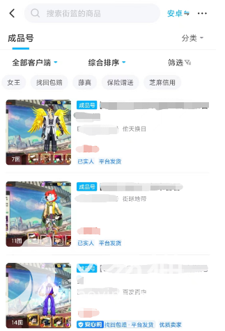 1、交易猫中的商品数量多,在街篮的专区中广泛为成品号,价格整体上下幅度不算很大,要是想要单个角色的话会比较便宜,想要买到一个较为不错的成品号也花不了多少钱,整个平台上架的商品性价比都很高,相比个人买家来说通常都有八九折的优惠折扣。