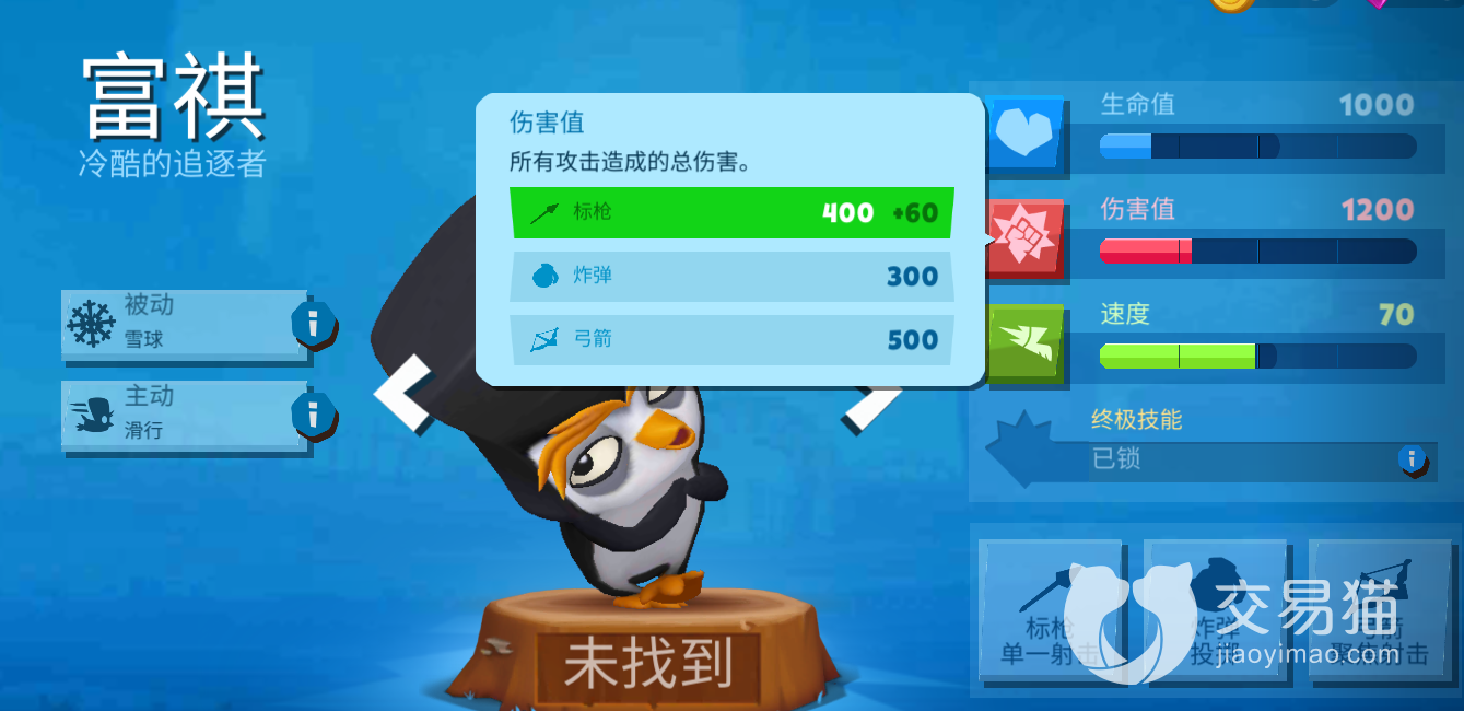 面板上,三项属性都中规中矩,七十的速度看起来可能有些落后,不过这个落后主要体现在地面上,毕竟是一只企鹅,不能指望它在陆地上跑太快。