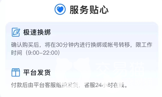一些有过卖号经验的小伙伴们应该都知道在卖号的时候,我们常常会因为现实原因导致不能及时发货,Don't worry~交易猫也贴心的考虑到了这一点哦~如果不想自己发货的话,我们可以选择平台发货。成功上架了账号以后就可以放心去做自己的事情啦,也不用担心买家下单的时候没看见而导致交易取消。现在只要有人下单购买账号,交易猫平台就会及时安排工作人员来跟进和对接,从而帮助我们能够及时完成交易拿到号款。