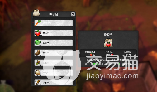 2、玩家可以通过钓鱼获得前期生存的资源了,这个时候就可以想办法在有限的条件内提高自己的生活水平了,玩家可以在海岛内部远离海边的位置开荒种地,玩家的背包里会有一个种子包,种子包里面有着各种各样的种子(随着玩家等级的提升和存活天数的增加可以解锁更多种植物的种子)