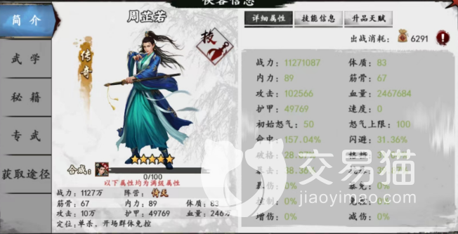 以上的四个角色,是游戏中排行在T0的位置,是游戏现版本最强的四个侠客了,大家如果想在游戏中大杀四方的话,还是尽量想办法去获取到这个四个侠客吧。好了,本期的内容到这里就结束了,感谢大家的观看,也祝大家早日获得游戏中强力的侠客,登上巅峰。