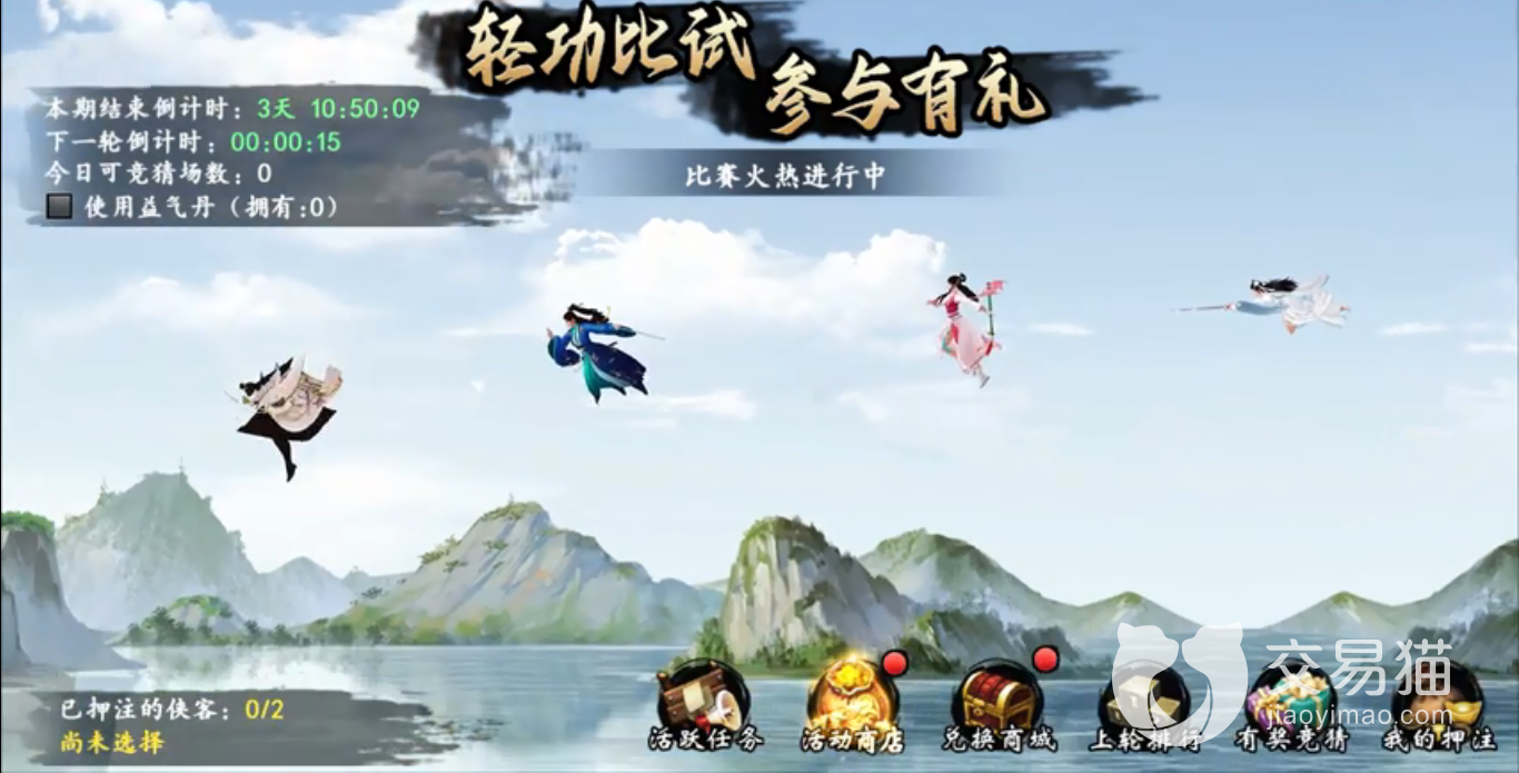 轻功比试是采用筛选性的,先大家一起报名进行海选,海选出32强的时候再进行分批比试,然后根据名次来获取不同的奖励,如果大家不小心在前期落败了,也不要担心的,后面的比赛中我们是可以进行押注其他选手的胜负来获取其他的丰厚奖励的,所以这个玩法还是很人性化的。