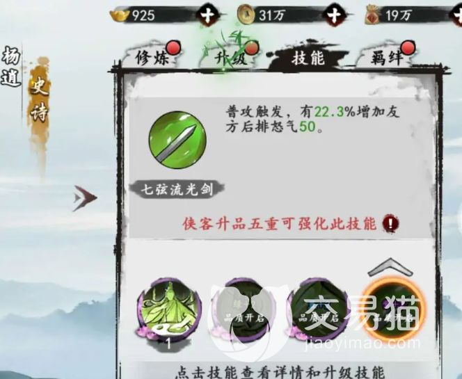 尤其他的大招乾坤大挪移可以制造晕眩效果,升级后可以变成弹指类的普通攻击,也可以让玩家陷入眩晕状态,三破神机可以提升攻击力,七弦流光剑提升到了紫级以后,可以提升愤怒值,对所有人都有很大的帮助。