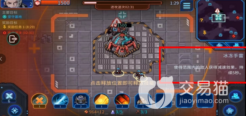 还有一些有辅助效果的道具技能,比如可以使用冰冻手雷,这个冰冻手雷的效果就是让敌人降低移动速度,还可以造成一定的伤害,冰冻的效果不是永久的,只有短短的五秒钟。