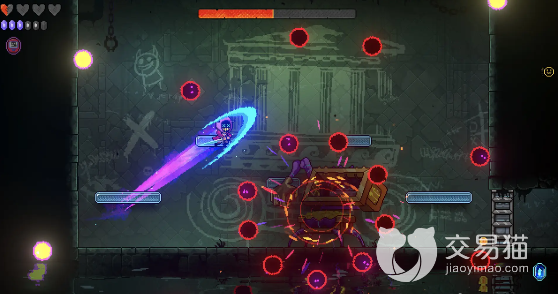 当boss的血量减少到一半的时候,这个时候的boss就会发动比较频繁的弹幕攻击,这个时候只要玩家操控不错基本都能够躲过去。如果玩家的操作没有很厉害不会躲避攻击的话可以跳到boss的头上进行输出。