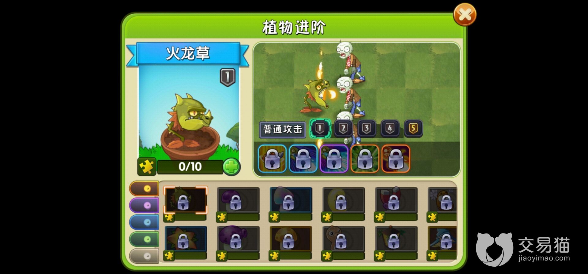 12、火龙草,向自身前方6格身位喷出火焰造成伤害,花费150阳光,技能效果为向前方喷出能摧毁目标的火焰柱。