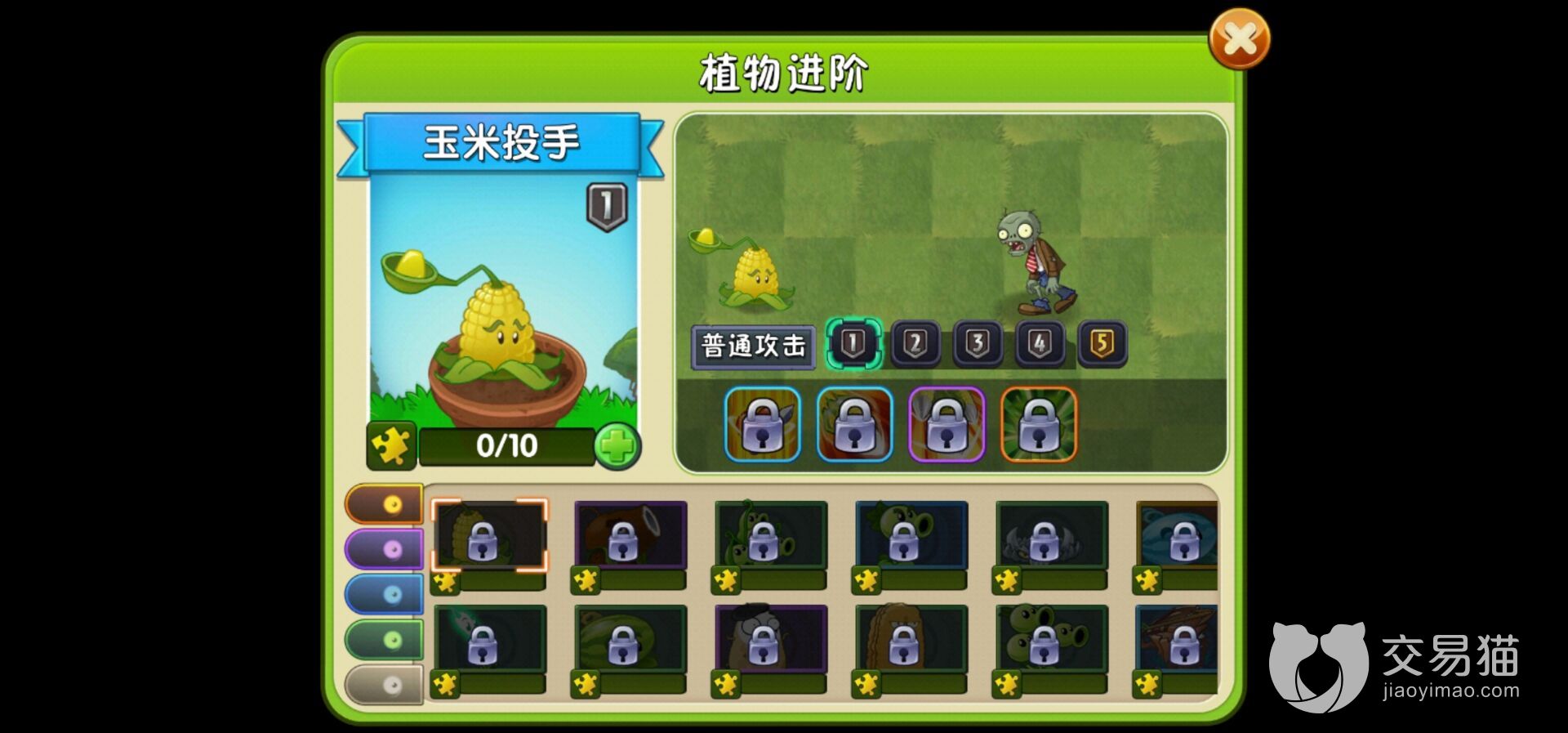 11、玉米投手,向前方僵尸投出玉米粒造成伤害或者投出可以定住僵尸的黄油,种植需要花费100阳光,技能效果为抛出大量黄油对僵尸造成伤害并且定身。