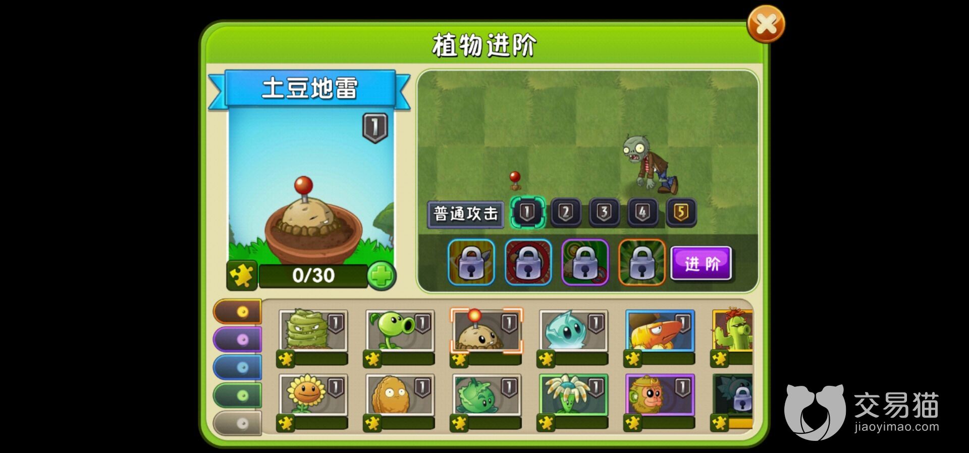 4、土豆地雷,土豆地雷会炸飞第一个踩到的僵尸,种植后需要一段时间启动,小伙伴要注意土豆雷种植后不能立马参与战斗的哦!需要花费25阳光,技能效果为向前方随机抛出两个土豆地雷。