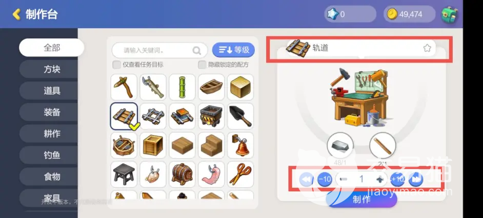 到了后期就可以创造出更多的有意思的道具,这时候我们会出现一个问题,那就是创造出的一些道具耐久度会不够,这时候我们可以去找铁匠铺打造更好的装备了,铁匠铺是在一个敞开式的小木屋,我们在地图上面去找找,在铁匠铺我们也是可以打造各种金属材质的镐、斧、剑,比我们之前打造的石斧什么的要强力很多,铁匠铺的设施很简单,就一个熔炉和打造台,我们需要先将获取到的金属原石先进行熔炼,炼成铸锭后,再去打造台进行打造,这时候我们就可以打造出金属的装备了,之前耐久不够的石头、木头的装备就可以扔掉了,这时候我们已经算是全副武装,可以去挑战更高难度的地图了。