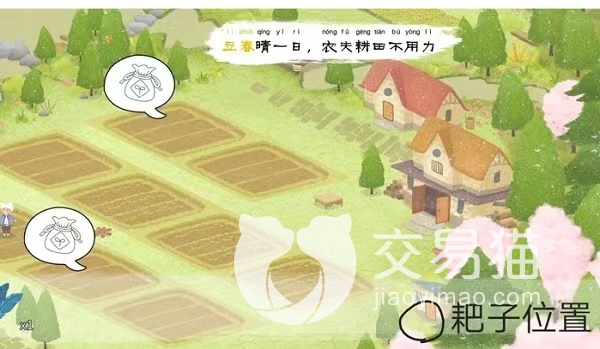 之后的游戏进度就按照节气来进行了。“立春”就代表着游戏的正式开始。进入后游戏内乌云密布,不是一个很好的天气,农民伯伯都显得非常的忧愁。此时根据上方那段文字提示,我们需要驱散乌云,帮忙耕地,播撒种子。