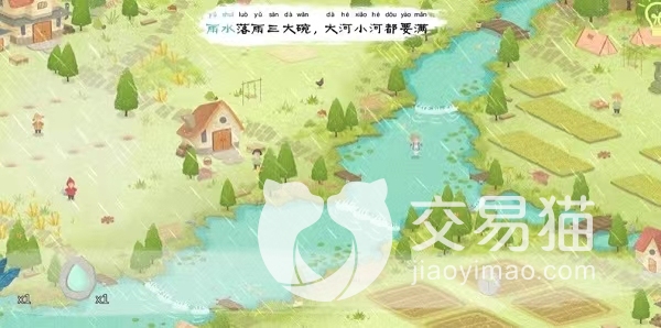 现在的节气到了“雨水”,是一个比较潮湿的节气,但河流却莫名干涸,干涸的河水无法给种子提供营养。此时我们就需要去到河流上游,点击上方的乌云,再把河道中堵路的石头清除,此时河流干涸问题就可以解决。