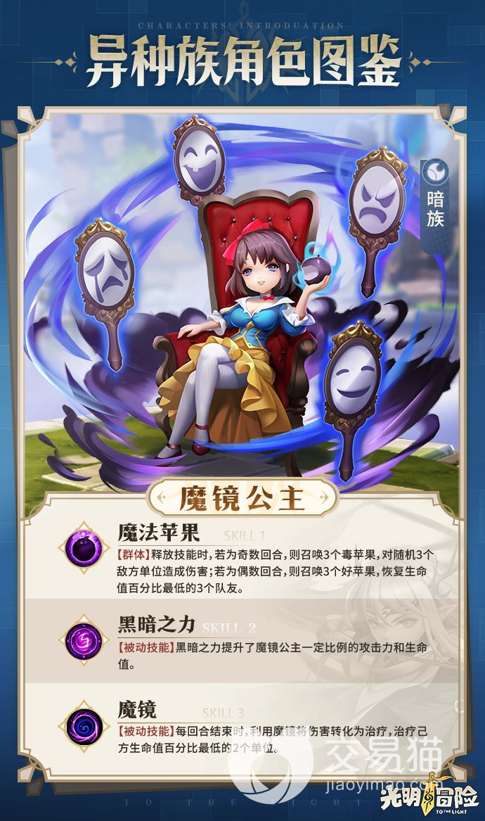 暗族本身就是游戏中比较稀有的一个种族,虽然相较于其他种族英雄数量会少上一些,但是不影响其强度的,下面小编就来告诉大家光明冒险暗族英雄怎么选。如果想要知道该游戏暗族中有哪些强势英雄的话,那么就一定要紧跟小编的步伐哦。以下这几个英雄都有着各自的特点,大家可以自行选择哦。