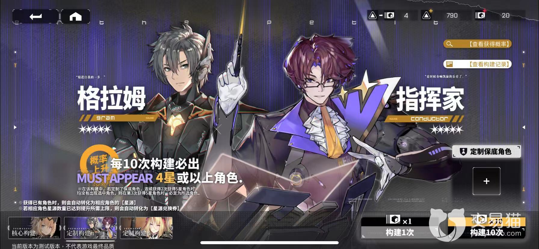 首先有两个人物是前期必推荐的,一个是总队长,另外一个就指挥家,这两个都是前期比较强大的输出角色,而且获取难度都不高。总队长是属于新手赠送角色,开局必送,指挥家的话则是需要在构建里面进行抽取,不过有一个新手构建板块,玩家们一共有30次抽取的机会,我们可以锁定指挥家快速进行抽取,基本上都能够获取指挥家这个角色。