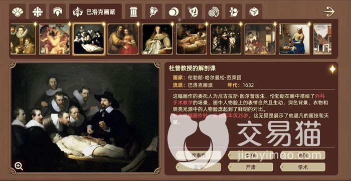 在进入挑战前,我们可以参考伯恩的意见,可以看到他提示我们,”芬妮蒂“关卡关卡的观众和观众是比较喜欢巴洛克画派的作品。所以在配置画作时,我们就尽量选择自己有的巴洛克画作。