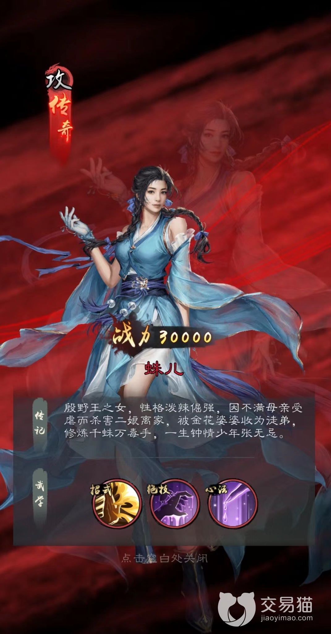 其中蛛儿属于游戏内活动赠送的传奇侠客,相信大家都能获得,而且蛛儿本身拥有很强力的输出技能,使用千蛛万毒手可以选择随机一个单体作为目标,造成伤害之后施加蛊毒效果。每回合损失血量同时降低防御,防御力降低之后方便于我方其他输出造成伤害,虽然是攻击型侠客但是也有很大的增益效果。心法蚀骨养蛛,如果对方被蛛儿蛊毒所击杀,那么自身还能恢复一次血量。虽然蛛儿在传奇类侠客中并不是顶尖的角色,但是在中前期用于PK确实很好用。