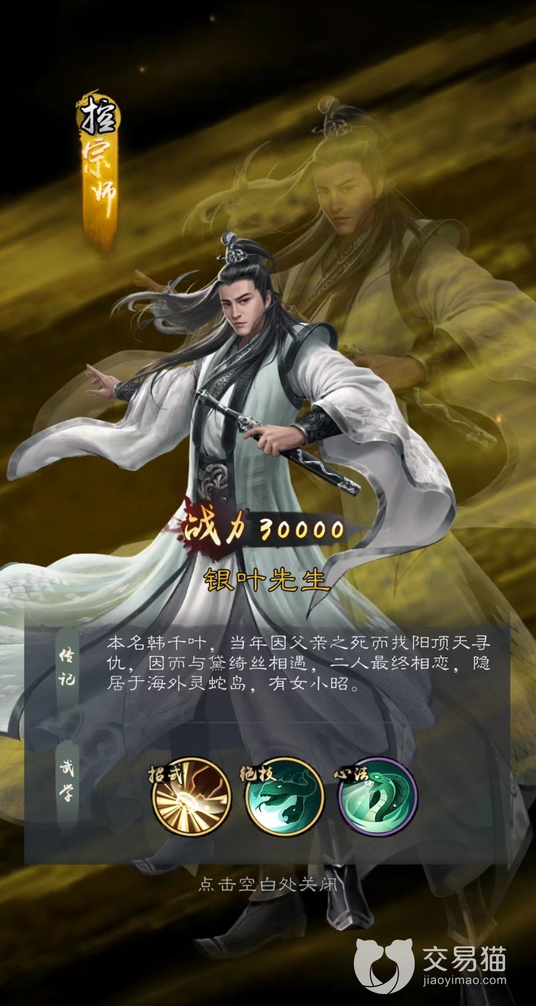 银叶先生的绝技灵蛇出动,锁定对方后排造成伤害,并且有极大的几率眩晕目标,心法灵蛇吐纳,伤害目标减少后眩晕几率提高,这一点和杨逍非常相似,但是眩晕拥有更强的控制效果。白眉鹰王的鹰爪功是输出极强的单体伤害,技能随机选择一名敌人造成伤害,并且暴击提高,在心法天鹰真气的加持下,血量下降之后自身暴击率提高。到后期白眉鹰王可以做到招招暴击,单体伤害上不输于蛛儿。 PK中单体点杀非常重要,如果直接能够打掉对方的核心,那么胜率将会极大的提升,比群体伤害要好很多。
