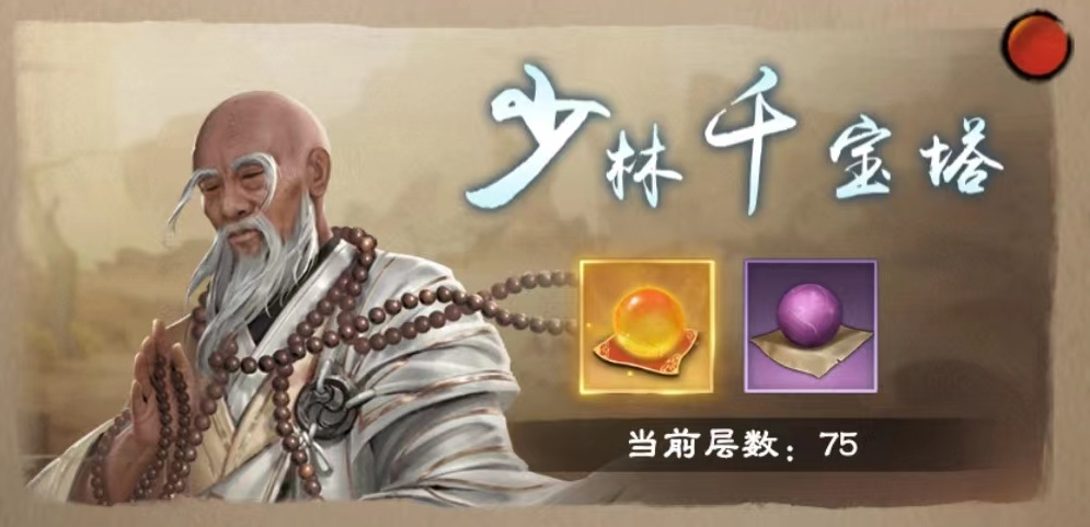 想要进入少林千宝塔,需要在主页面中点击挑战玩法,从主页中就能直接进入到其中。该活动采用的是闯关类玩法,从下到上从第1层开始一直往更高处挑战,每一层都有守关敌人,实力从弱往上逐步提升。主要获得的奖励有突破丹和经脉丹,作用于侠客的突破对战力影响非常关键。尤其是突破丹,这里挑战更是少数几个途径之一。