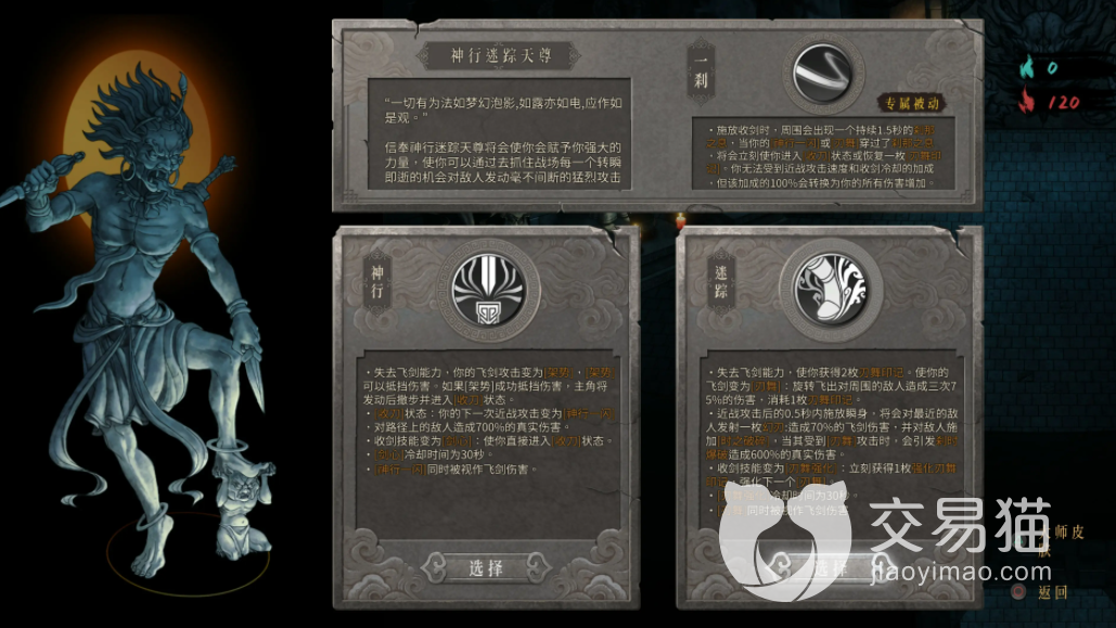 这个需要玩家在佛堂打开商店用红魂解锁这个流派,我们就可以开启神行迷踪天尊流派了,那么我们再来分析一下这个流派的技能,神行迷踪天尊流派主要分为两个技能,神行和迷踪。