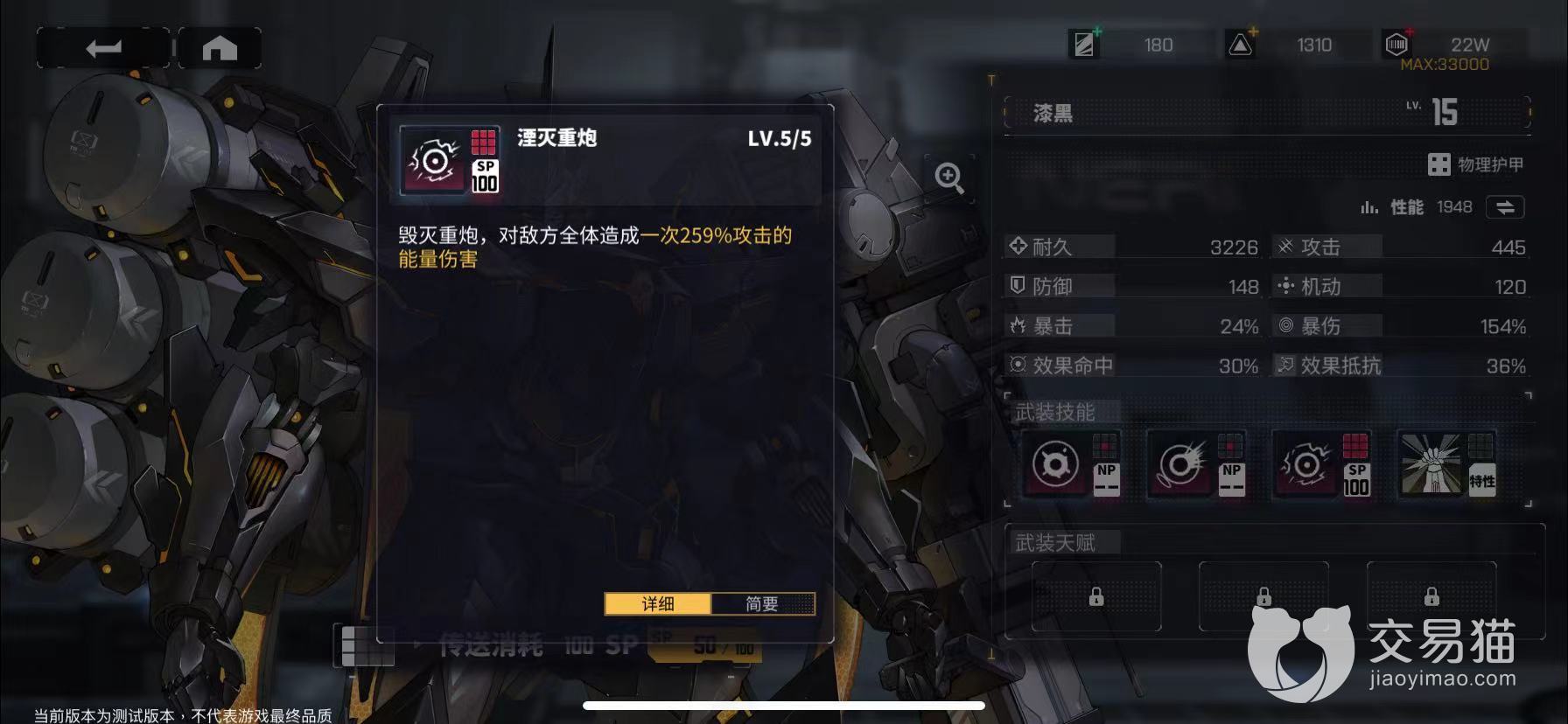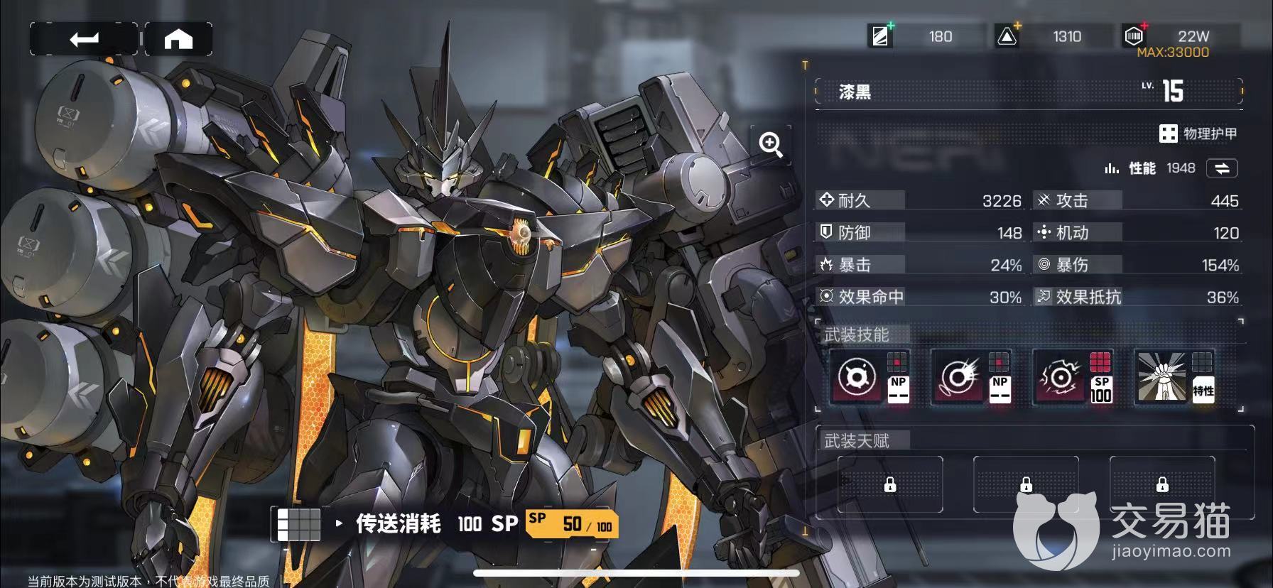 这个角色可以用于前期的推图快速培养,暴击率不高,但是爆伤效果还是很不错的,超高的耐久度以及攻击效果可以让其在前期稳定的进行输出,属于四星角色,前期还是很有培养价值的,他的机体也是很炫酷的一身铠甲,更换形态之后,整体的输出将得到翻倍的增长,最高可以对敌方造成259%的攻击能量伤害,如果是对面都是脆皮英雄的话,直接可以一波带走所有人。