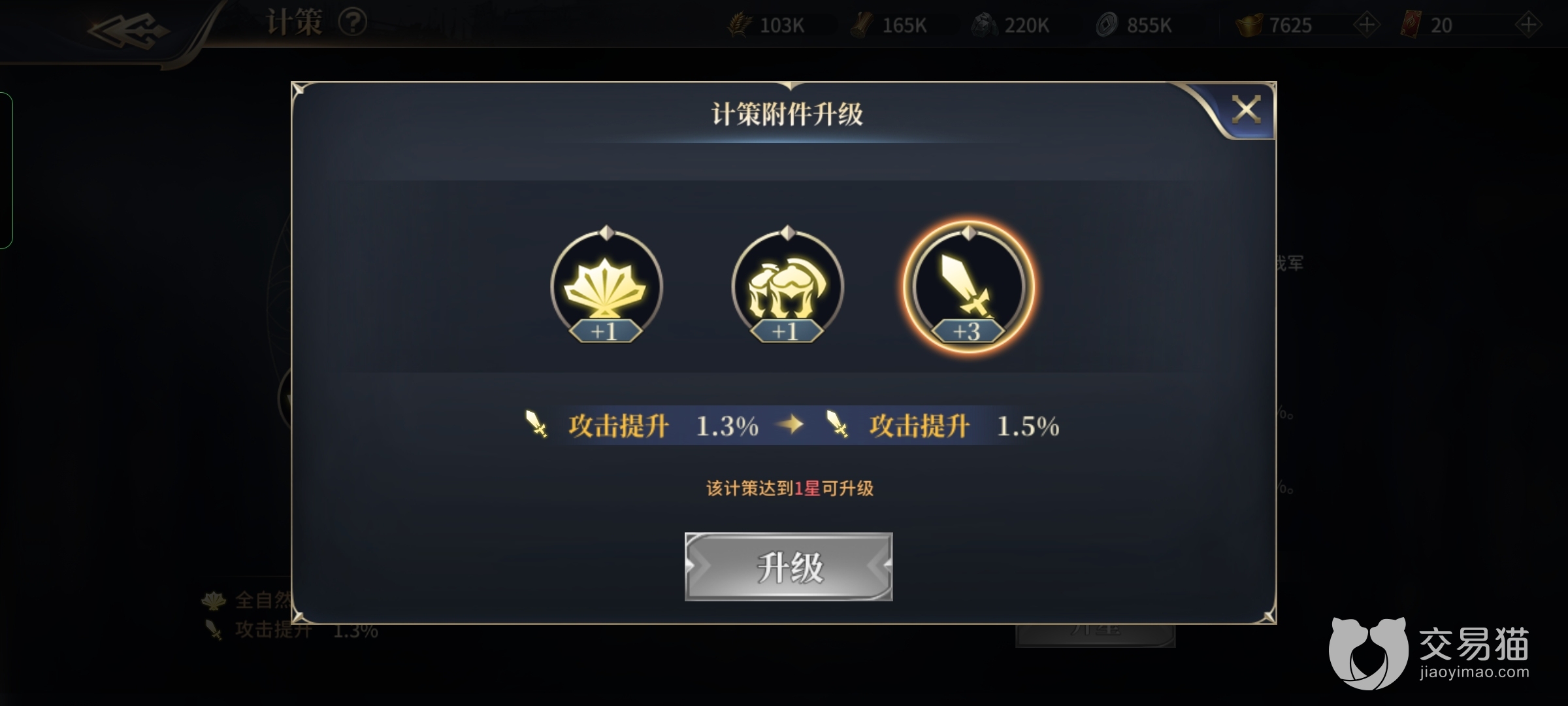 玩家大概到二十级左右解锁计策,玩家点击培养那一栏就能找到计策的按钮,计策是需要计策碎片才能激活的,一般的计策碎片就是紫色的,可以通过丝绸之路获取升级星级需要将三个位置全部升满才可以,最高升到六级。