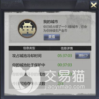 在成功完成挑战以后,玩家就能够占领那个地方了,并且在规定的时间内容是会有保护机制的,也就不会受到其他主公的攻击。另外在点击一个城池之后,其下方还会有抢夺的选项,这个是表示对占领了这个城池的人进行抢夺,只要成功就能获取一定的银子,这个功能每日是有次数限制的。