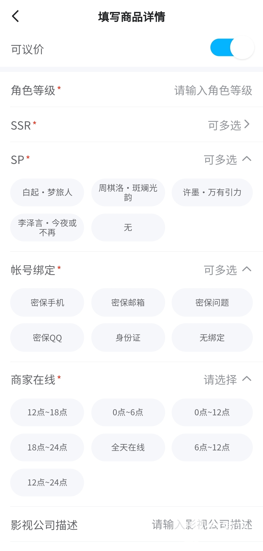 如果你也有想出手的账号,下载好交易猫后,该认证的认证,该授权的授权(安全,可放心操作)再找到“我要卖”选择游戏,填写好相关信息就能轻松上架了,非常便捷,对吧~