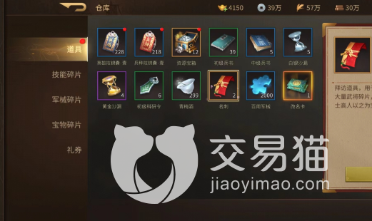 大家在进行拜访的时候也是需要消耗道具的,这个道具就叫做名刺,相应的城池拜访的时候你要派出去兵士然后带上名刺才能够前去拜访,这样获取的碎片也试试比酒馆中要划算一点的,但是就是名刺不太好获取,而且消耗获得的碎片也是不一定的。