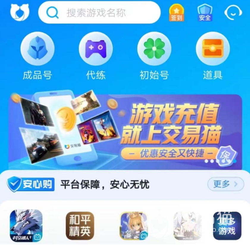 交易猫是国内少有的线上账号交易平台,其包含了成品账号,初始号,以及道具交易等一系列的线上交易。