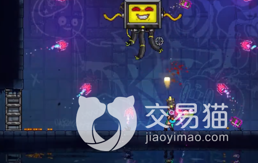 第一阶段:这个时候的boss有着两种攻击方式,一种是通过快速投放电视炸弹,这种炸弹的移动速度很快,而且投放的轨迹是根据玩家的位置定位的,所以玩家很难摆脱,只能过尽量远离boss快速移动来躲避。第二种技能就是通过散射弹幕来攻击,这种攻击范围大,间隙大玩家很容易就可以躲避。