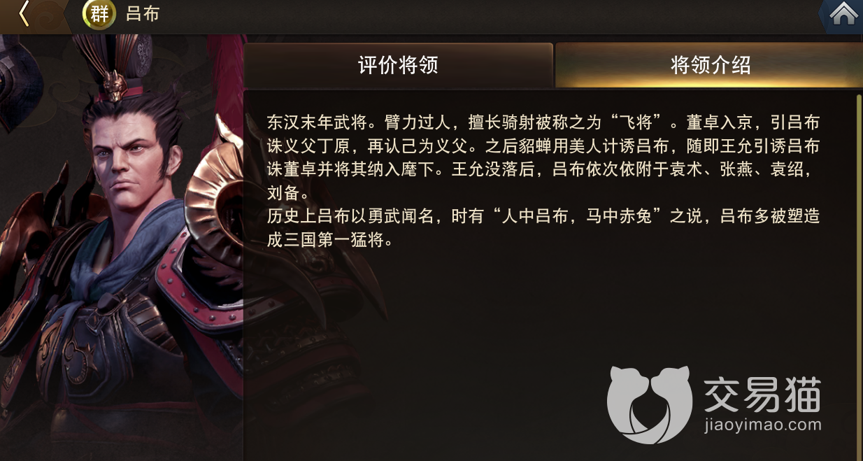 这位是全游戏基础战力最高的武将,属性上除了智力和政治力略显凄惨外,另外两项直接关系实战强度的数值可以说傲视群雄。