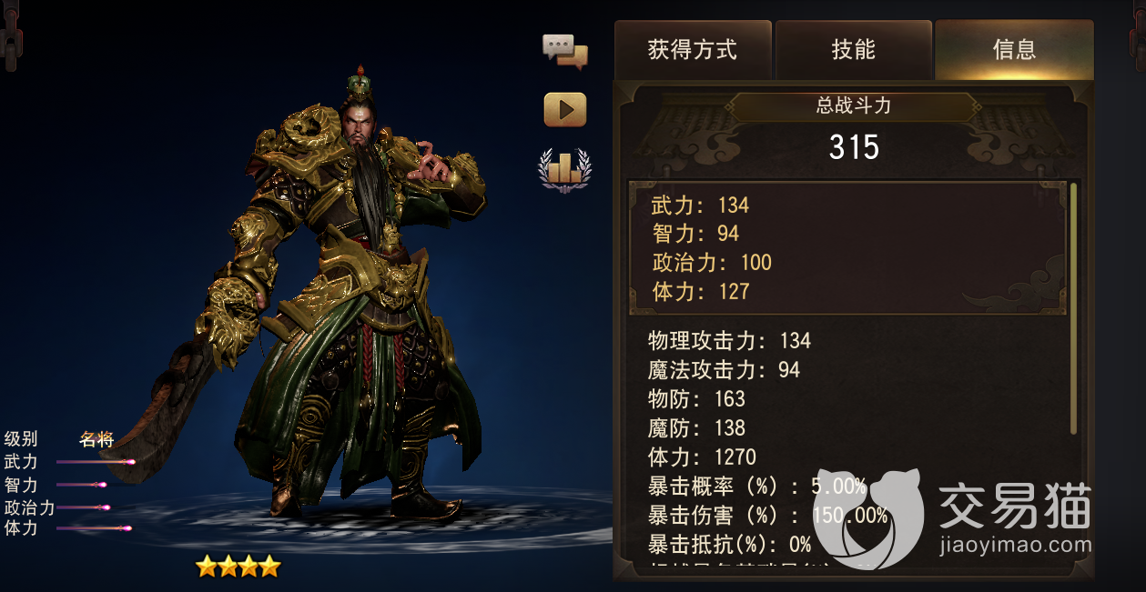 最后介绍的这位算是和关羽同一类型的全能武将,兼具政治力与武力,技能更是能提升攻速,暴击且附带控制!