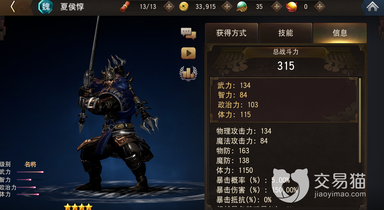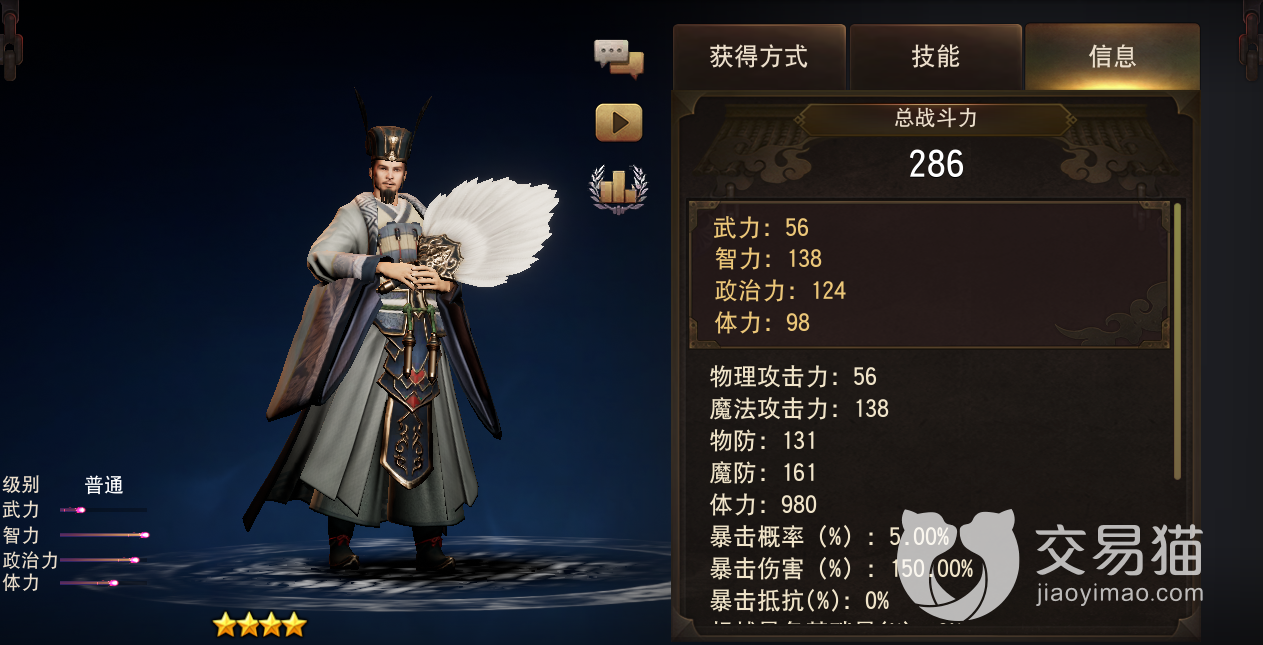 虽然战斗能力不算强,但体力也让其能稍微站住脚,而且,他高额的两项智力系属性能让其在日常经营建设中帮助玩家补足后勤,壮大兵力,因此,作用也是毋庸置疑的。
