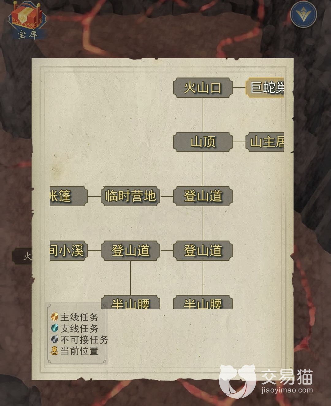 其中有一项是寻找烈火仙莲,它的具体为孩子就在落风山脉哪里的巨蛇洞中,各位只需要点击右上方的地名,就可以调出小地图界面了,从这个地方就能够精准的找到对应位置。