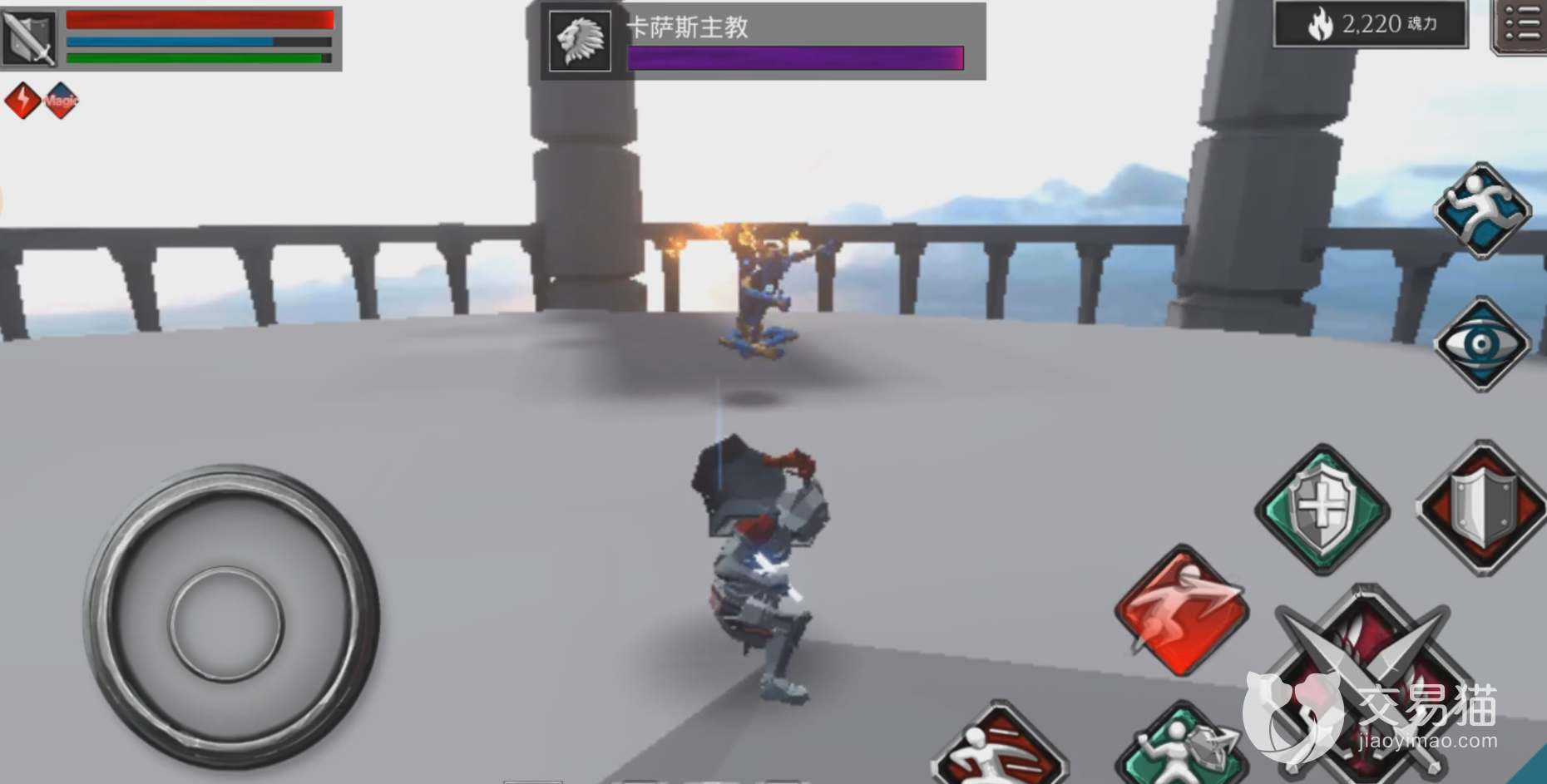 整个关卡中最重要的敌人,也就是主教。我们要躲开他的攻击,特别是光抢,一定要跑远一点躲开,然后火球的话要靠闪避。然后在敌方出现抓取动作的时候,一定要翻滚躲开。还有敌方还会自爆,造成的伤害范围很大,所以一定要看对面的攻击动作。