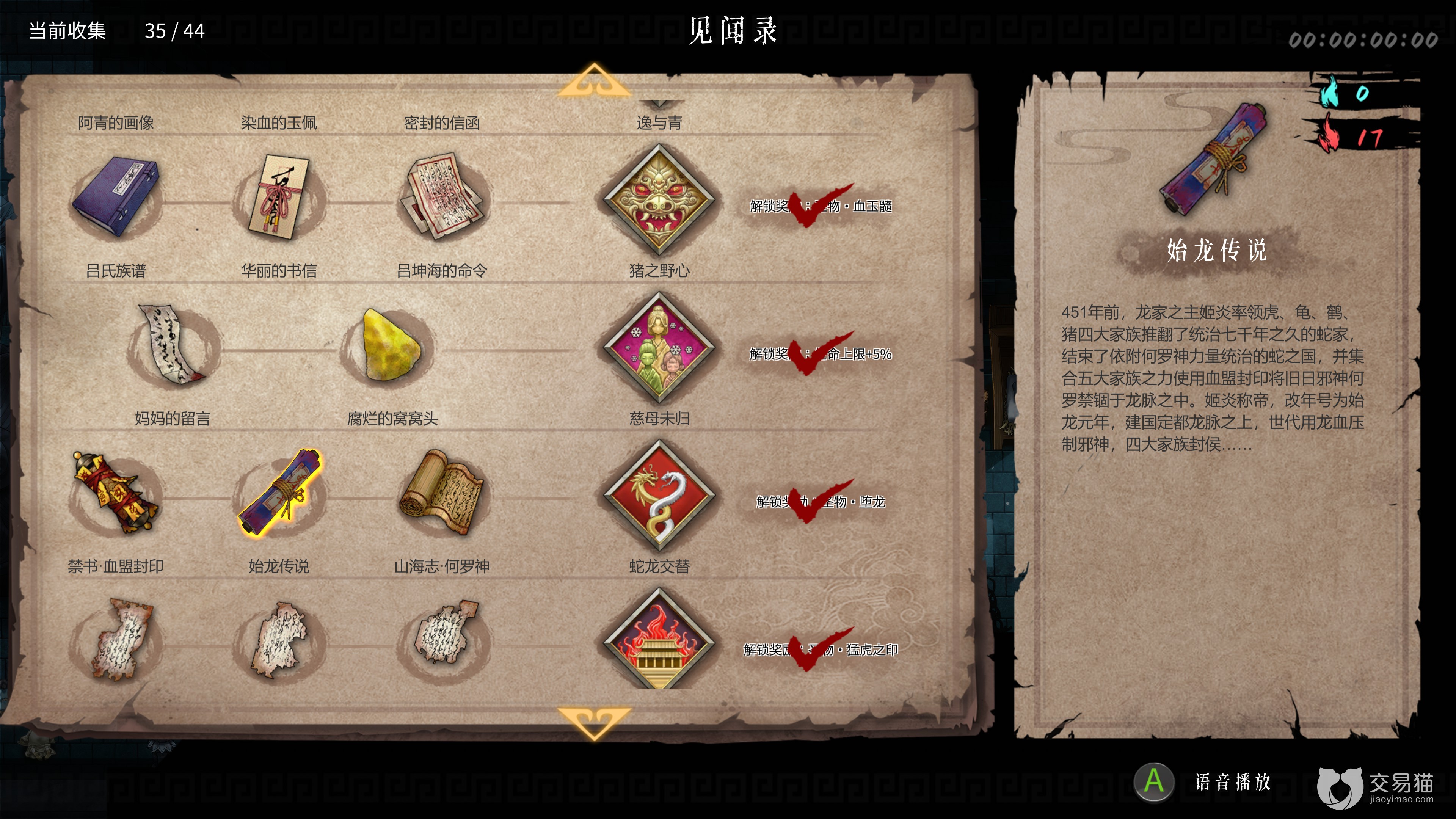 最后这个圣物的获取的卷轴信息其实就是玩家游戏的主线剧情了,交代了游戏的内容以及人物的背景,如果玩家已经通关了一次千万不要忘记回到基地去解锁这个龙蛇交替的成就。