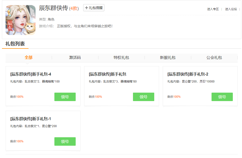 辰东群侠传礼包码有哪些 礼包码大全分享