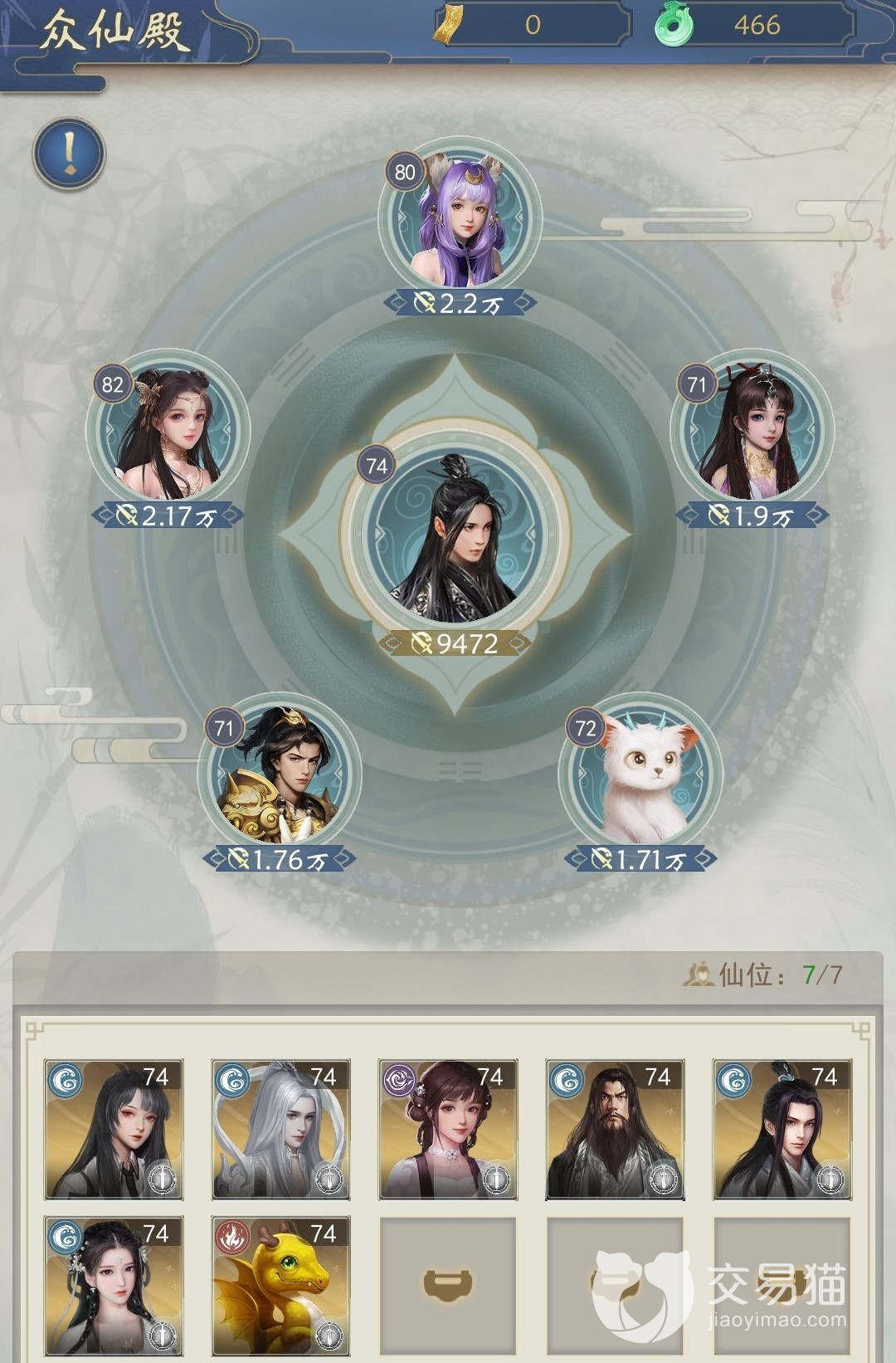 进入这个界面之后,首先会看到的是两个已经开启的位置,在那里上面可以放置持有的角色,将其放上去之后,它的等级就会被提升至当前玩者现在道龄的级别,同时也会有相对应的属性加成。