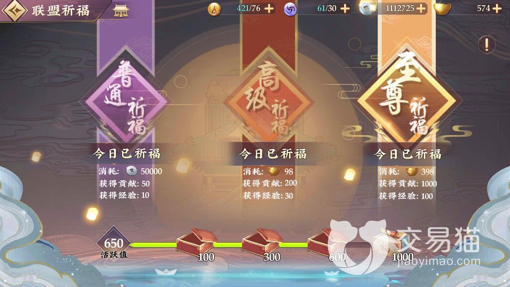 其中高级和至尊祈福都需要玩家们消耗掉部分元宝才可以顺利的完成,整个过程中如果各位元宝的数量不充足,就会直接导致祈福失败,小编建议大家在主线任务中去进行获取,数量达到要求之后再去进行祈福。当各位成功的完成了三次祈福之后,就可以直接打开全部的祈福宝箱来获取各类道具。