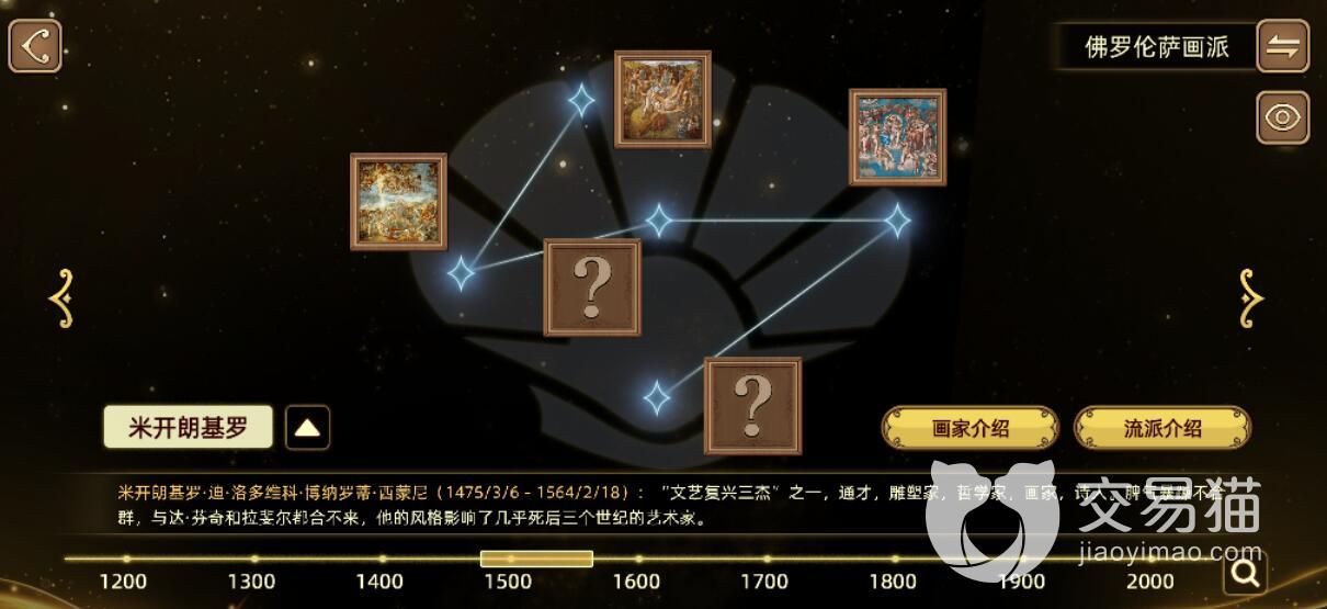 玩家们在游戏的图鉴功能当中,会发现部分流派的图鉴出现大量的问号,这就是因为各位还没有完成收集和解锁原因导致的。成功解锁之后,各位就可以在图鉴当中去了解每一个作画以及相关流派的历史信息,同时也将从这里判断出游戏当中哪些流派和图案是属于高级阶段的。