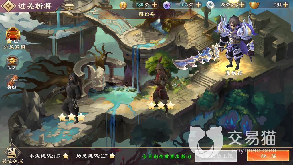 当然,即便大家不适用合体技,在一轮又一轮的技能攻势当中,夏侯惇也会逐渐被击溃。玩家们在成功的完成了挑战之后,就可以得到珍贵的星级奖励了,后期还会在过关斩将当中得到更多高级属性的选择权。