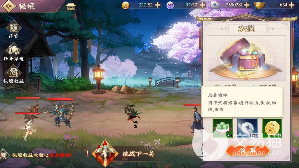 各位在赢得胜利之后,就可以的关卡的结算页面下发现得到的培养精粹具体数量。随着秘境关卡的不断升级,后期只要能够得到胜利,玩家们将更轻松的获取到大量培养精粹。合理的去使用该方式,各位就不用担心培养武将的问题了。